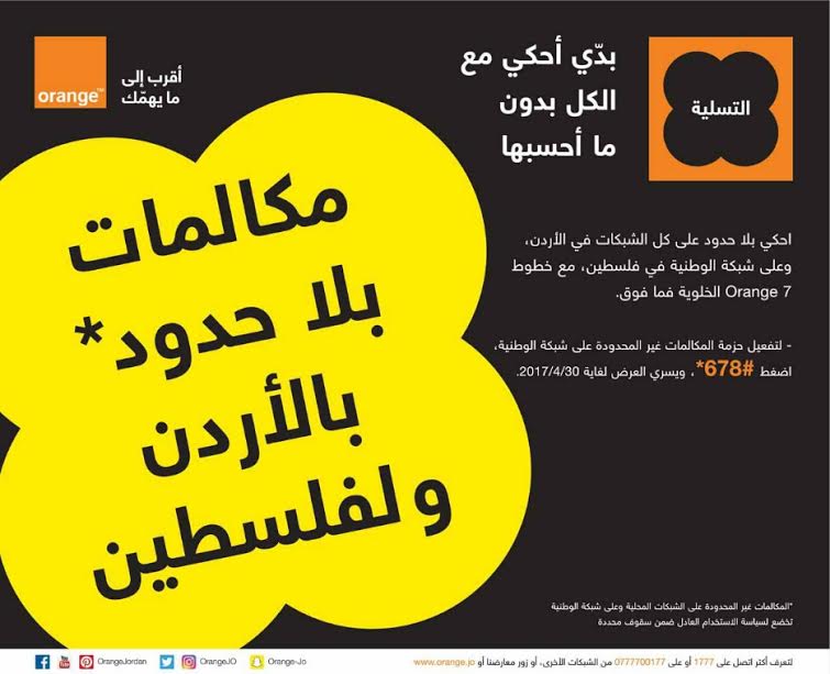 | Orange الأردن تطلق عرض المكالمات الدولية على شبكة "الوطنية" فلسطين |