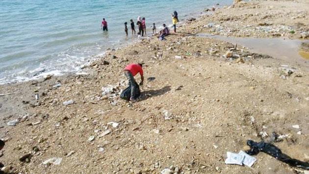 | طلبة جامعة البترا يشاركون في حلمة لتنظيف شواطئ البحر الميت |