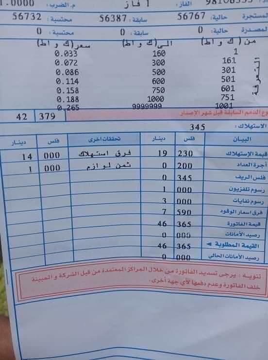 | انخفاض فاتورة احد المصانع باربد من 17 الى 15 الف دينار |