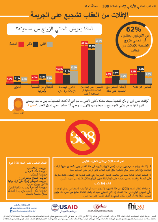 | تضامن : ثلاثة من كل خمسة أردنيين يعتقدون بأن الجاني يتزوج الضحية وفق المادة 308 للإفلات من العقاب |
