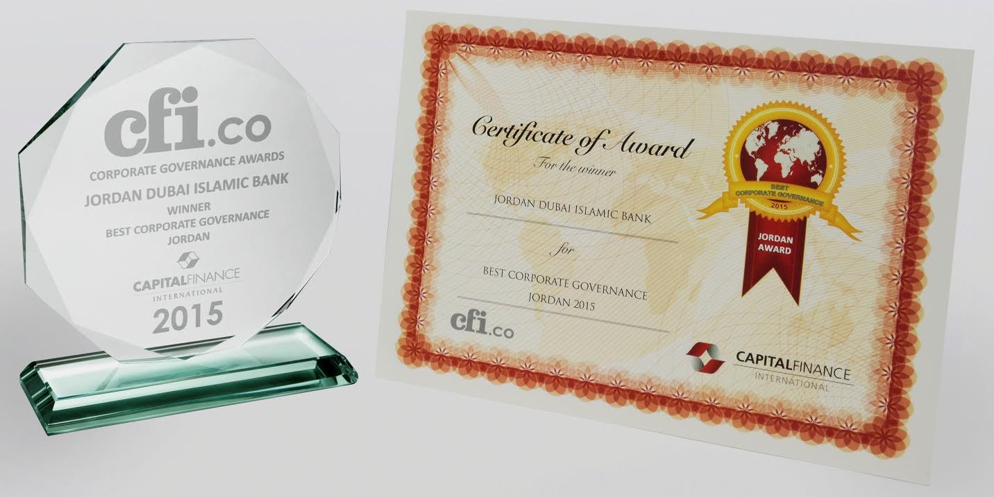 | الأردن دبي الإسلامي يحصل على جائزة "أفضل بنك في تطبيق الحاكمية المؤسسية في الاردن لعام 2015" |