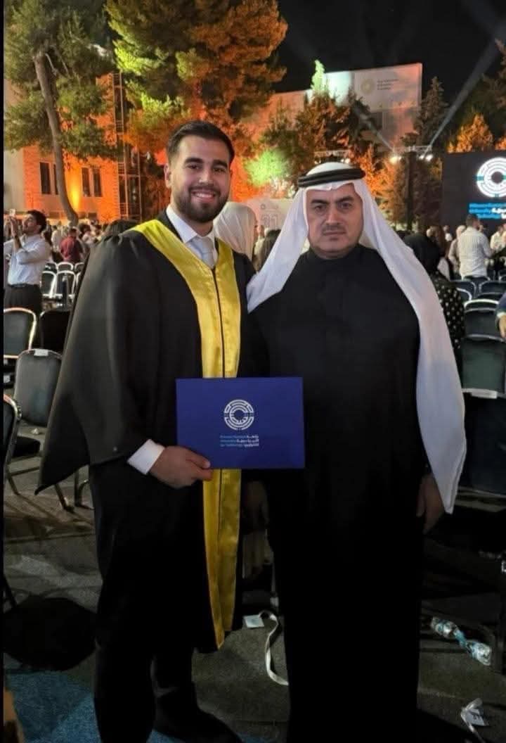 يتقدّم الدكتور علاء أحمد حراحشة بخالص التهاني والتبريكات إلى سعادة الشيخ الغالي خالد نواف العيطان، بمناسبة تخرّج نجله الكابتن نواف من جامعة الأميرة سمية للتكنولوجيا.سائلاً...