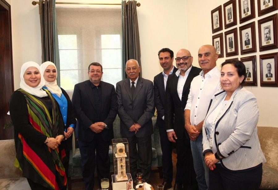 استقبل معالي رئيس الديوان الملكي الهاشمي يوسف العيسوي يوم الخميس الموافق معالي السيد أيمن حتاحت / رئيس نادي خريجي الكلية العلمي الإسلامية وأعضاء الهيئة الإدارية. |