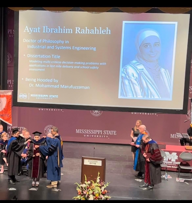 حصلت الدكتورة آيات ابراهيم فرحان رحاحلة على درجة الدكتوراة بالهندسة الصناعية بامتياز من جامعة المسيسيبي في الولايات المتحدة الأمريكية مبارك والى الأمام دائمًا جلال... |