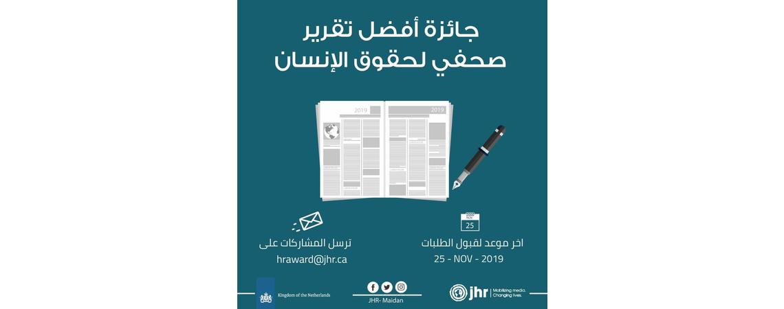 تعلن منظمة صحفيون من أجل حقوق الإنسانJHR وبدعم من سفارة مملكة هولندا عن إطلاق مسابقة أفضل تقارير صحفية تناولت قضايا حقوق الإنسان في أي جانب من جوانبها، وذلك خلال الفترة... |