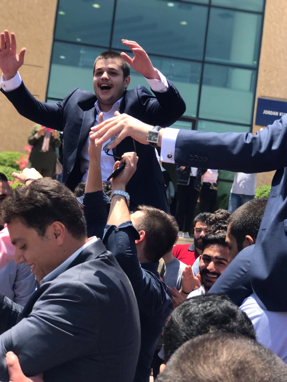 يتقدم الأهل الأصدقاء بالتهنئة والتبريك من الطالب ايمن اشتي بمناسبة تخرجه من كلية العمارة والتصميم -جامعة البترا، تخصص التصميم الداخلي، الف مبارك عقبال الدراسات العليا. |