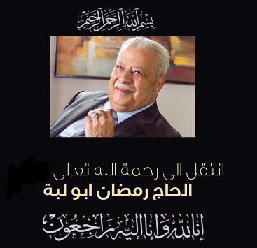 انتقل الى رحمة الله تعالى الحاج رمضان ابو لبة.ويصلى على جثمانه بعد صلاة ظهر الاثنين، في مسجد ابو عيشة الكائن على طريق المطار مقابل المدارس الامريكية وسيشيع جثمانه الى مقبرة... |