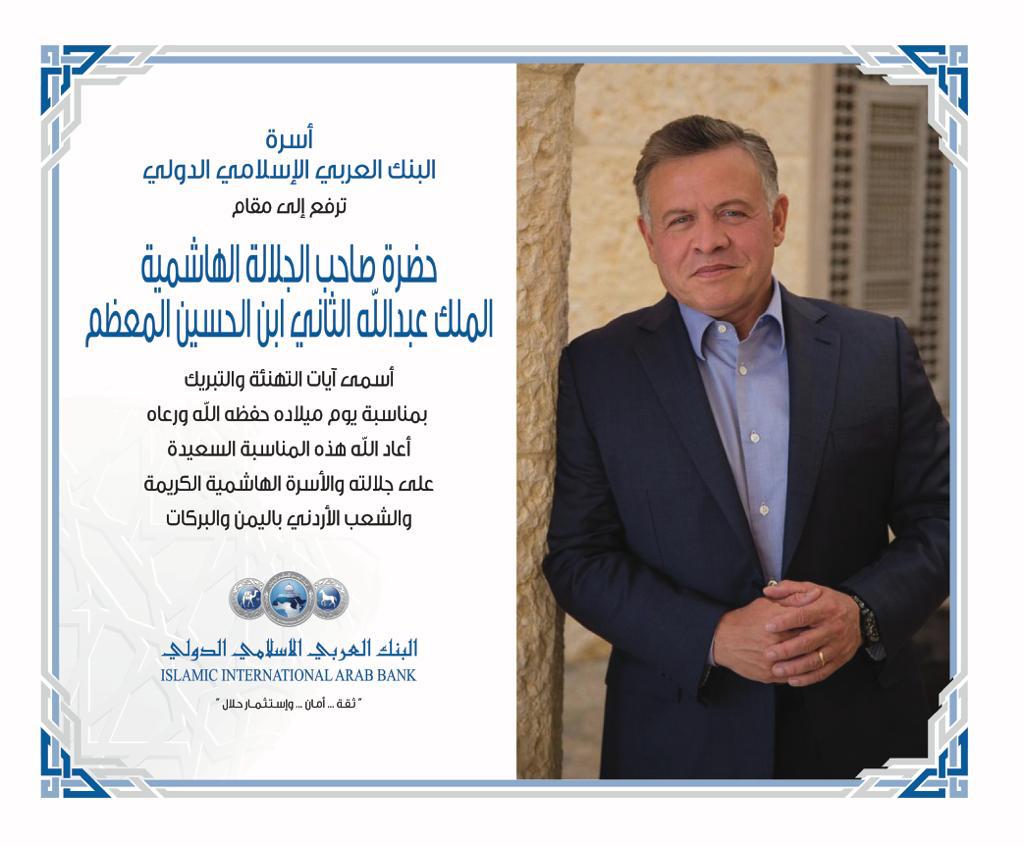 | البنك العربي الاسلامي يهنئ جلالة الملك بيوم ميلاده |