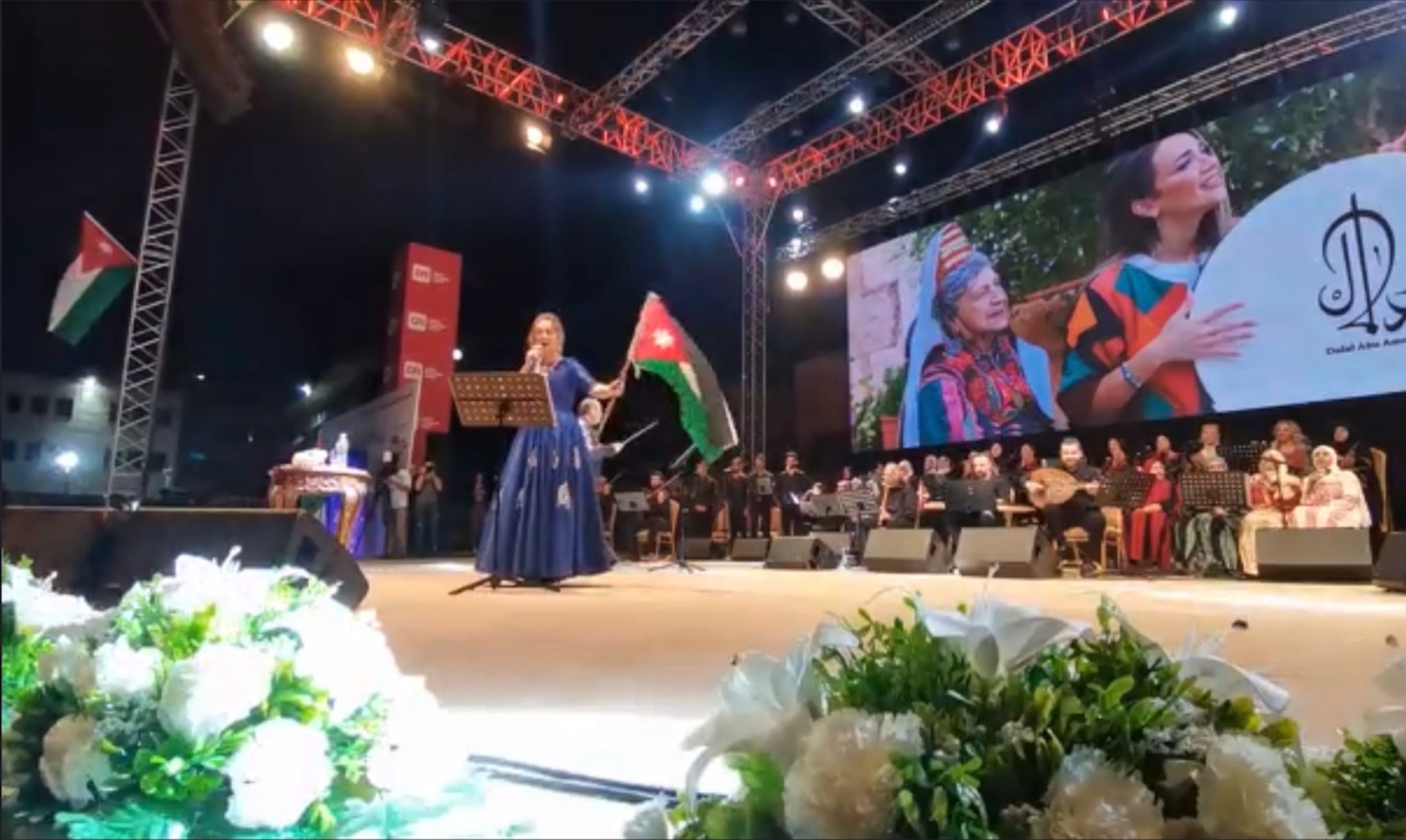 | الفنانة الفلسطينية دلال ابو آمنة تزهو بالعلم الاردني بحفلها في "مهرجان الفحيص" فيديو |