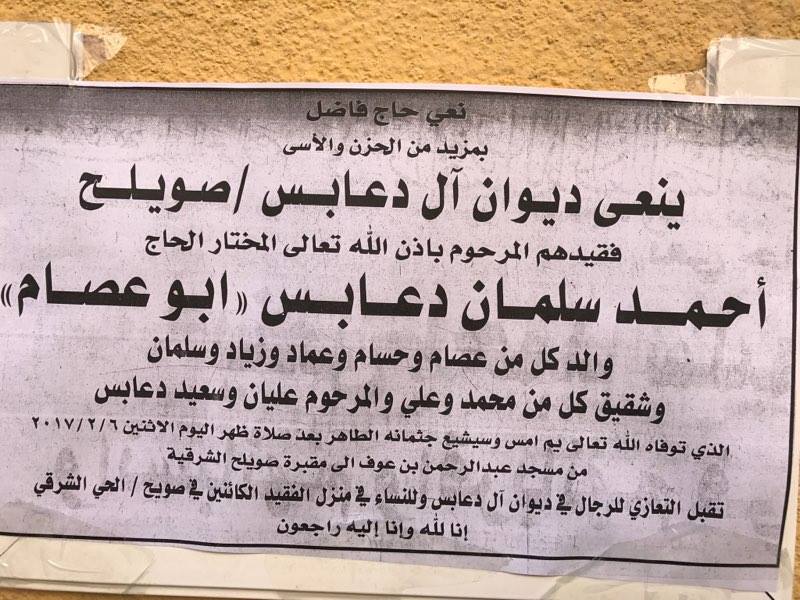 | آل دعابس ينعون فقيدهم المختار ابو عصام |