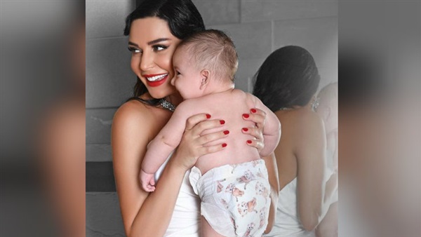 | أحدث صورة لسيرين عبدالنور مع ابنها "كريستيانو" |