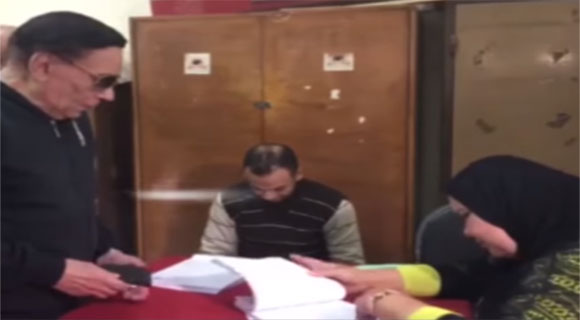 | عادل إمام ينتخب ويمازح موظفة بسبب “المحشي” |
