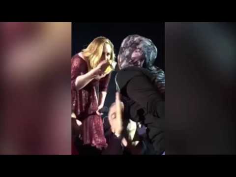 | أديل تقبِّل يد فتاة محجّبة أمام الجمهور-فيديو |