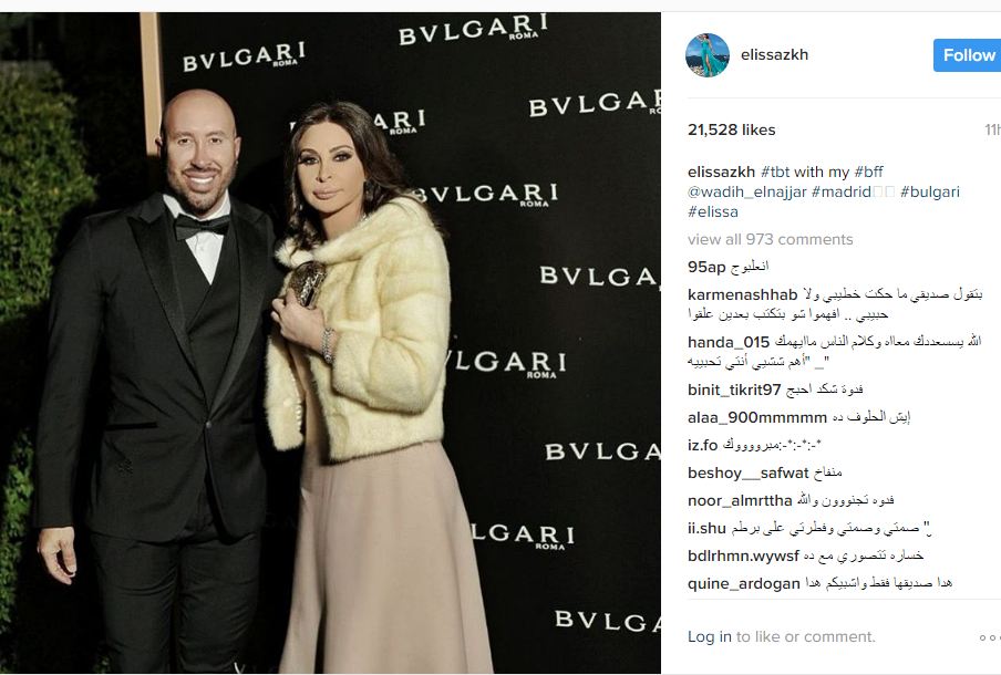 | إليسا تتجاهل خطبتها وتنشر صورة مع وديع النجار |