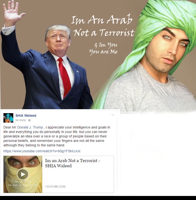قام الفنان الأردني اللبناني شيا الوليد بالرد على قرار دونالد ترامب بمنع دخول المسلمين لأميريكا و اتهام العرب و المسلمين على الأخص بأنهم ارهابيين، عبر اطلاق أغنية (أنا عربي... |
