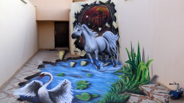 | رسام سوري يحول مدخل منزله إلى تحفة فنية -فيديو |