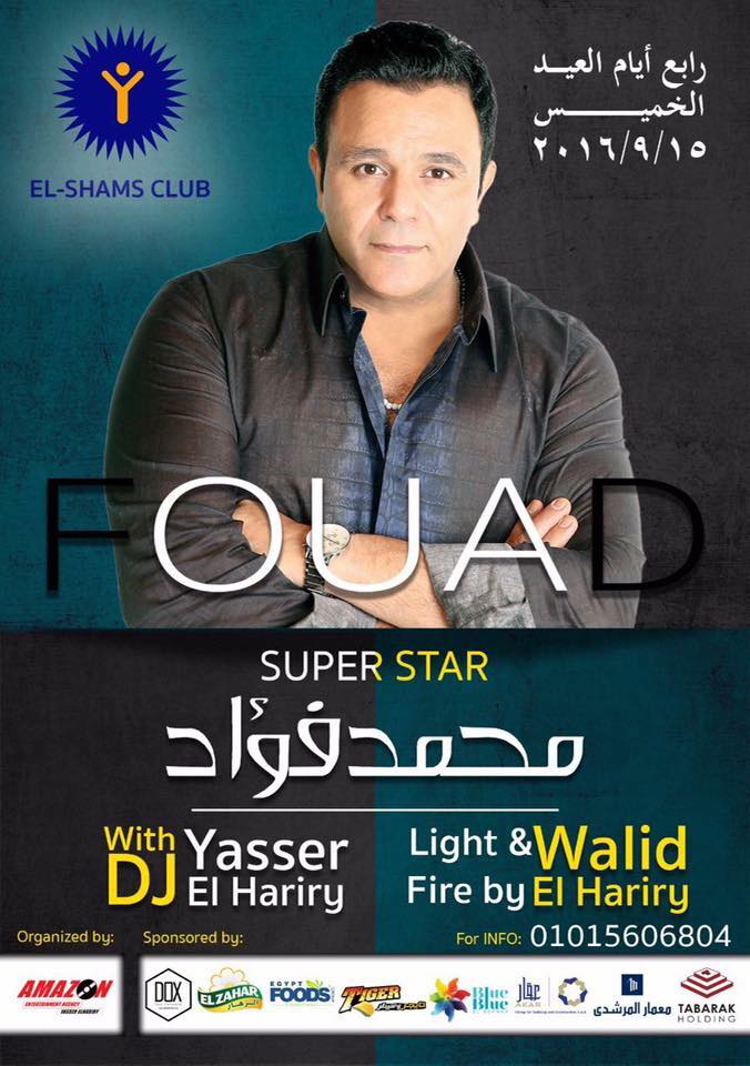 عمر حديديإحتفالاً بعيد الأضحى المبارك يحيي الفنان المصري محمد فؤاد حفلاً غنائياً في نادي الشمس رابع أيام العيد في الخامس عشر من شهر أيلول/سبتمبر الجاري.محمد فؤاد من المقرر... |