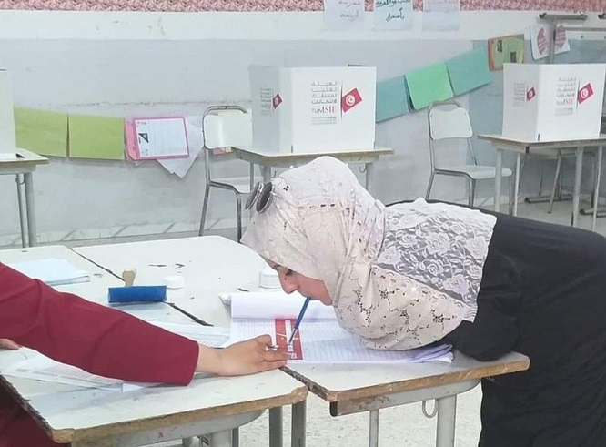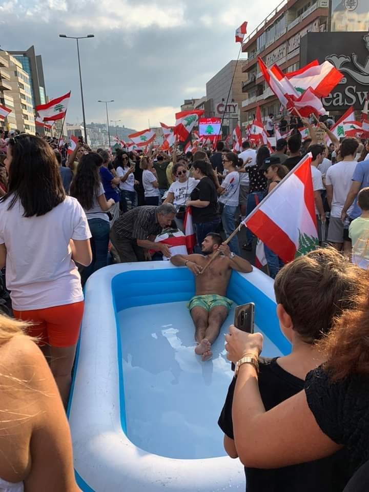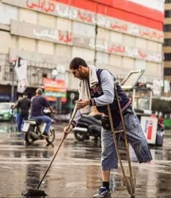 | شخص من ذوي الإعاقة صبيحة مظاهرة ضخمة في طرابلس بشمال لبنان |