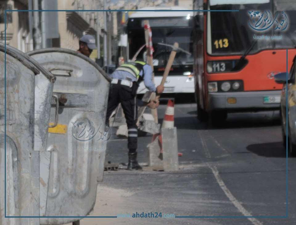 رقيب سير يساعد عامل في فتح منهل في شارع الجامعة الأردنية |